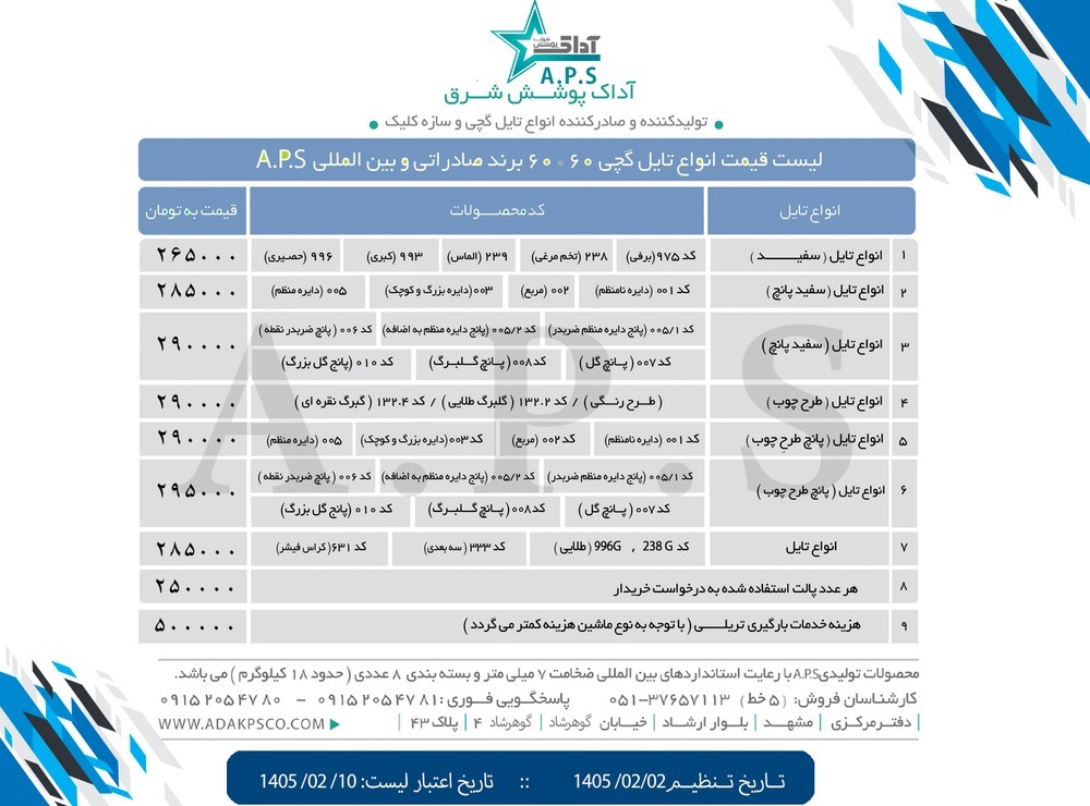 • لیست قیمت تایل و سازه